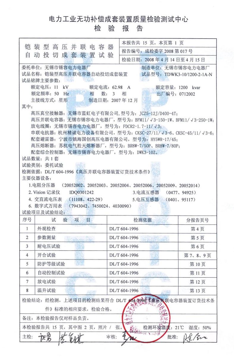 Test report release time:2020-07-20 04:06:13source:Wuxi Xirong Electric Appliance Co., Ltd.Click:1349
