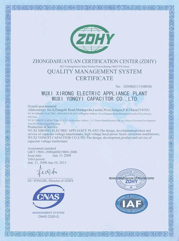 Qualification certificate release time:2020-07-20 04:20:36source:Wuxi Xirong Electric Appliance Co., Ltd.Click:1470