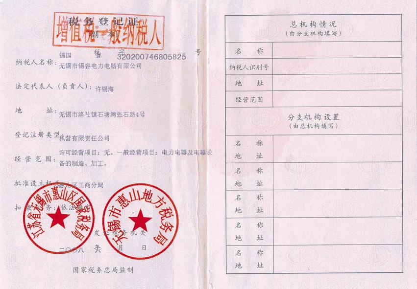 Tax registration certificate release time:2020-07-20 04:34:39source:Wuxi Xirong Electric Appliance Co., Ltd.Click:1516